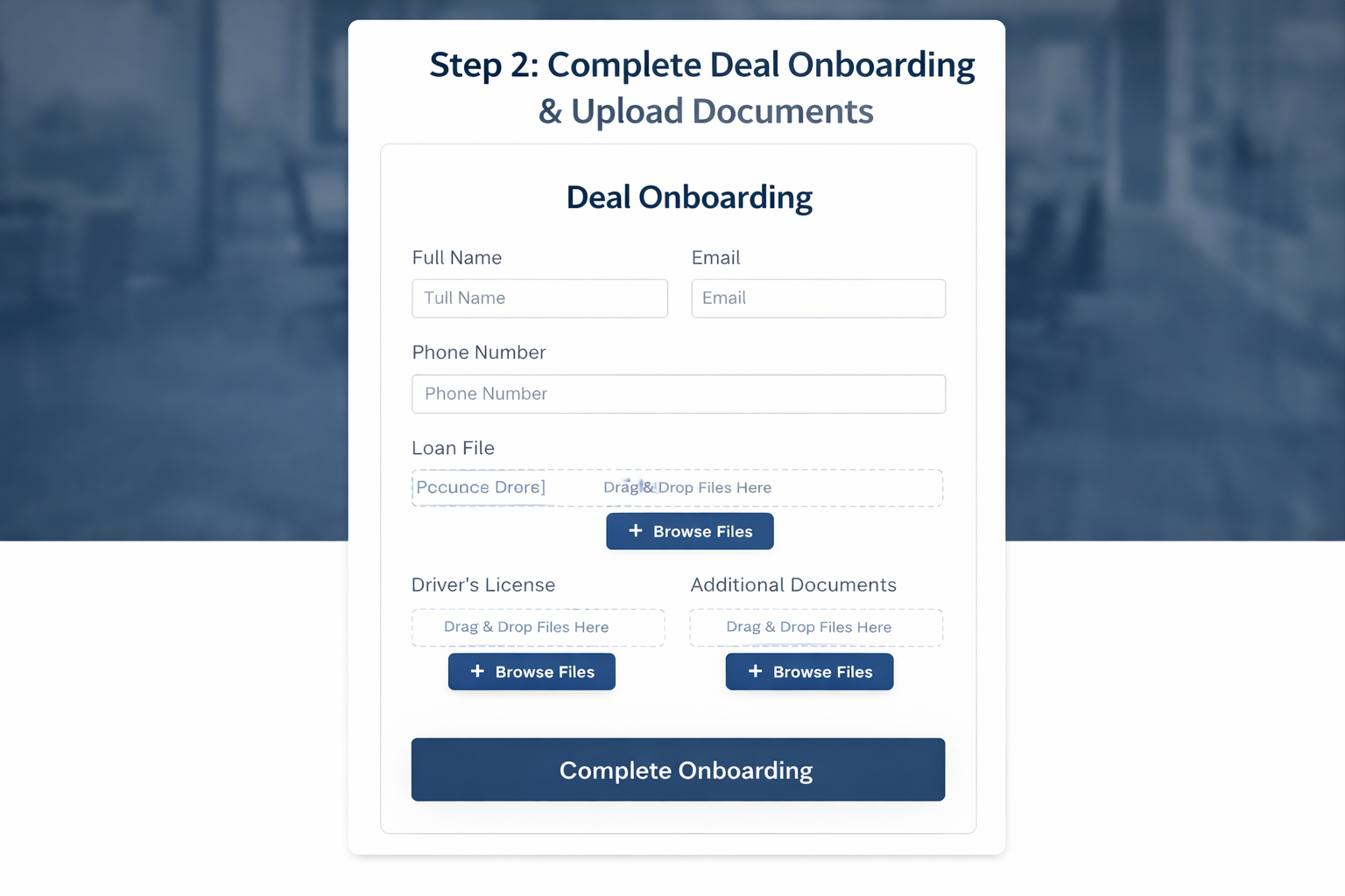 Step 2: Complete Deal Onboarding & Upload Documents